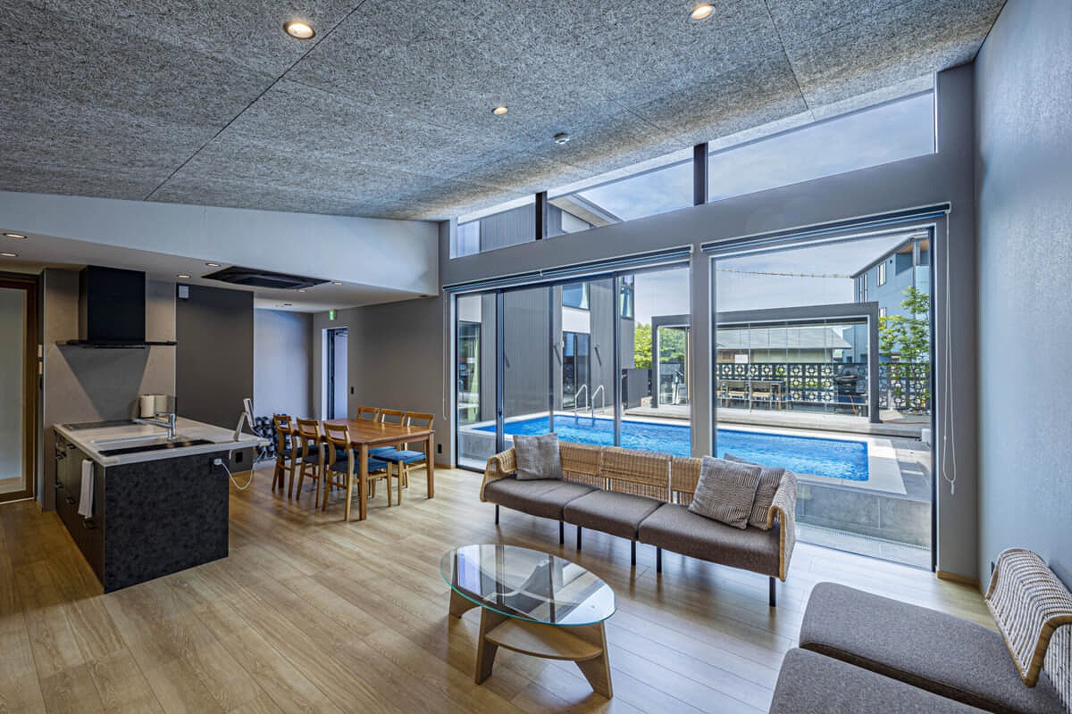 リビング・ベッドルームを配置する1階、畳スペースを配置した2階で最大8名まで宿泊可能となっております。部屋も分かれてお休みいただけるので、家族旅行やグループ旅行など様々なシーンに対応しております。